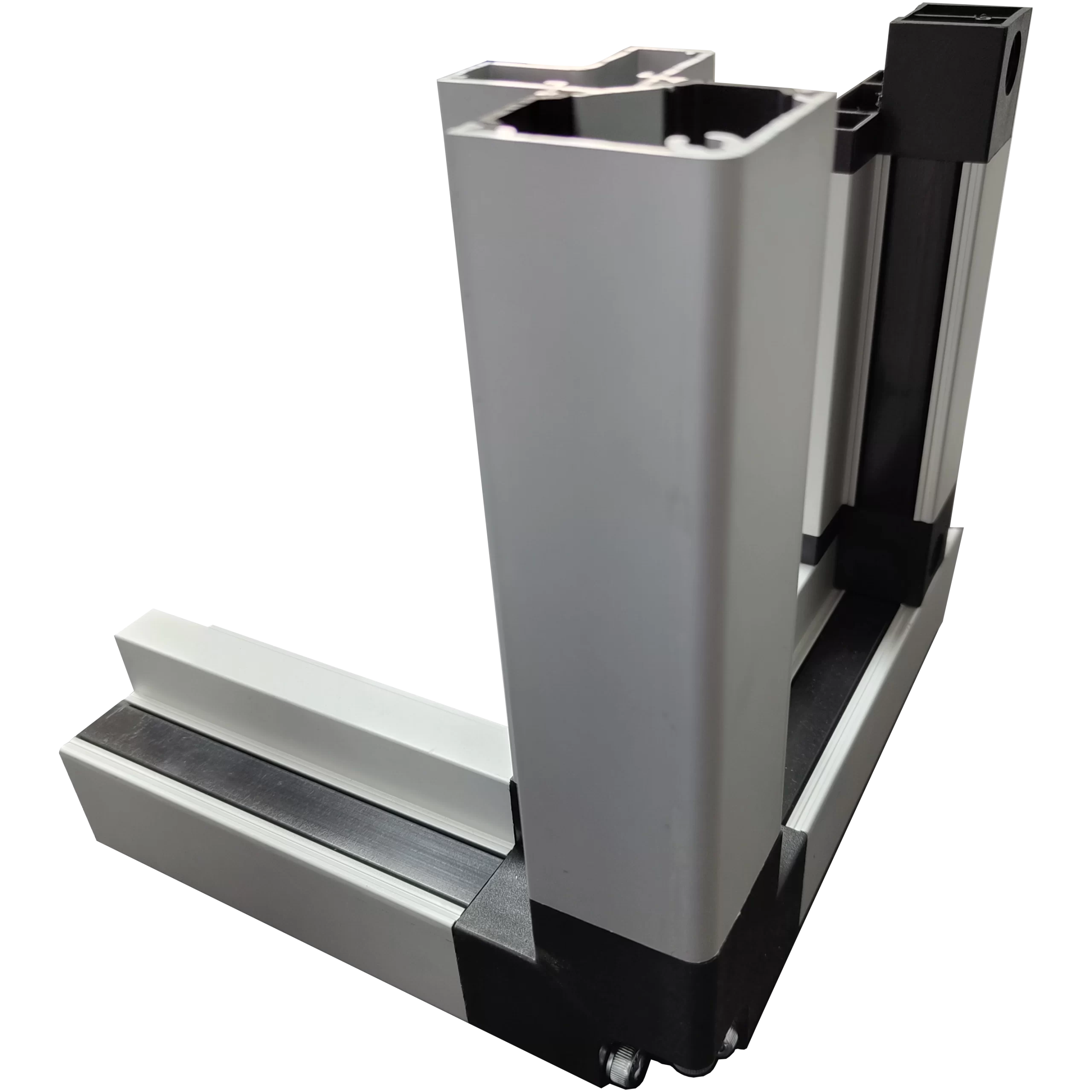 Estructura con perfiles extruidos de aluminio AL6063-T5 con insertos de polipropileno reforzado con fibra de vidrio para rotura de puente térmico.